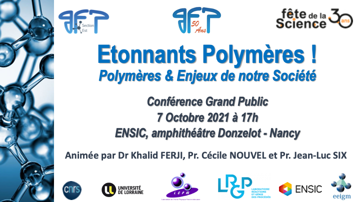 Dans le cadre de la Fête de la Science 2021, le Groupe Français d’Études et d’Applications des Polymères (GFP) organise des conférences Grand Public à l’échelle nationale pour découvrir le domaine scientifique des polymères.